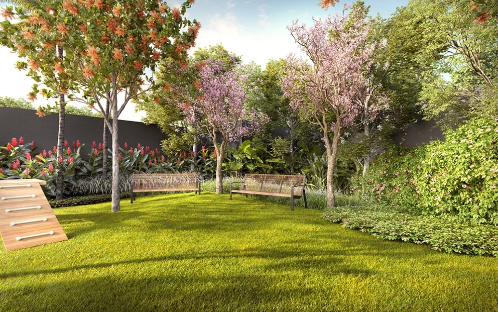 Áreas verdes e playground: integradas a um paisagismo refinado que proporciona tranquilidade e bem-estar.