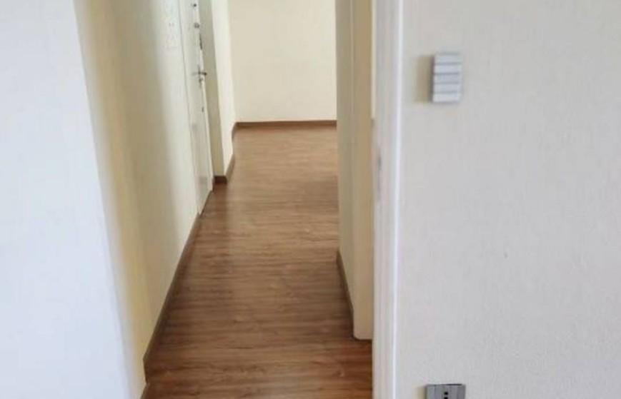 Piso laminado em todo o apartamento, conferindo sofisticação e conforto